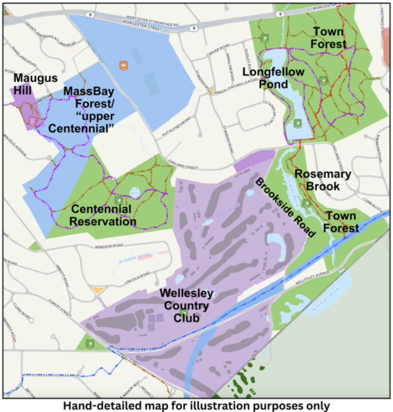 Rosemary Brook, Longfellow Pond, Scenic Brookside Road, Town Forest, Community Gardens, the Esker and the Trails, Centennial Reservation, the golf course, Town drinking water wells...